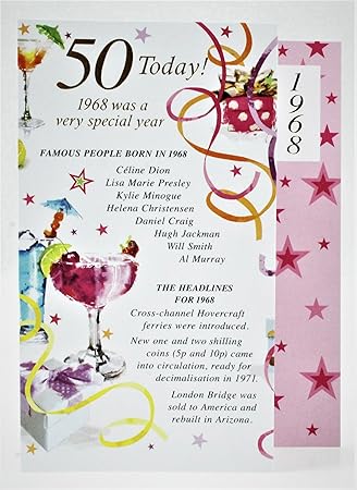 50 rocks! birthday present ideas for 50 year old! #craftyideas 50th Birthday Cards from Greeting Card Universe Funny 50th Birthday Gag Gifts | Fabulous at 50 | Pinterest 50 Today 1968 Special Year Born Happy Birthday Card Facts Quality Funny Happy 50th Birthday Card. Old? Says who? 50 years old might