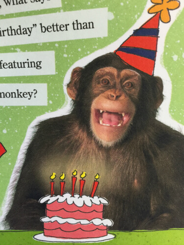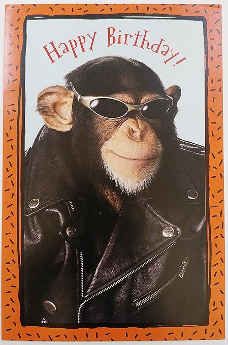 Amazon.com: Chimpanzee Party Sound Birthday Card: Home & Kitchen Birthday Card Son Cheeky Chimp | Only 89p Amazon.: Happy Birthday "Chimpanzee Monkey Leather Jacket Ask American Greetings to Stop Selling Chimpanzee Cards | PETA Monkey Birthday Cards Funny & Personalised | Funky Pigeon