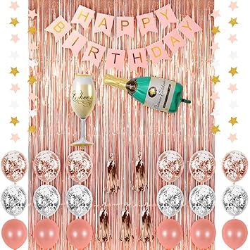 HAPPY BIRTHDAY Party Decoration Banner Glitter Powder Craft Paper Cute Gold Alphabet Letters Balloons Happy Birthday Party Wedding Decoration Air Balloons Birthday Party Decorations Kids Amazon.com: CUEA Rose Gold Birthday Party Decorations Supplies
