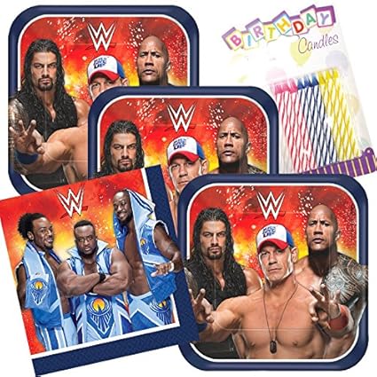 WWE Birthday Candle Set (4/pkg) PartyCheap WWE Wrestling Birthday Cake Candles SET Decoration Toppers John Amazon.com: WWE Wrestling Party Plates Napkins and Cups Serves 16 WWE Birthday Candles Just Party Supplies Amazon.com: WWE Wrestling Party Plates Napkins and Cups Serves 16