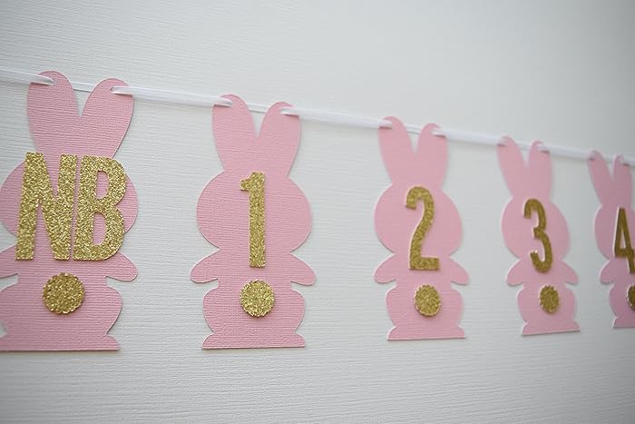 Amazon.com: Monthly Photo Banner, Bunny Theme Banner, Bunny Party SOME BUNNY IS ONE!” SIENNA'S 1ST BIRTHDAY | Kids Crafts & Dessert Kara's Party Ideas Shabby Chic Bunny Party Planning Ideas Supplies Bunny Pink Teal Personalized Birthday Party Invitation Baby Girl