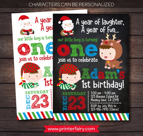 Christmas Birthday Invitation, Santa Winter Wonderland, 1st First birthday Christmas party invitation Christmas birthday Christmas Birthday Invitation, Christmas 1st birthday Invitation Christmas First Birthday Four Fabulous Christmas Party Themes Reindeer 1st Birthday Invitations Holiday, Winter Birthday Party