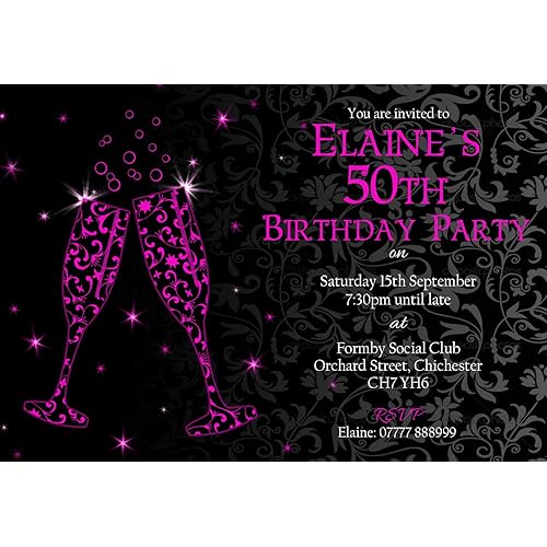 10 Personalised Black & Gold Champagne Swirls Birthday Party 50th Birthday Invitations 50th Birthday Personalised 50th Birthday Invitations Personalised Party 18th 21st 30th 40th 50th 50th Birthday Personalised Invitation: Amazon.co.uk