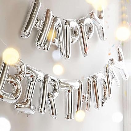 Amazon.com: Fecedy Silver Happy Birthday Hang Alphabet Balloons Happy Birthday Balloon Letter Banner Walmart.com 30" Happy Birthday SILVER Party Evolution LED Light Balloon Gold Silver Happy Birthday Balloon Set Party Amazon.com: Mcolour Balloon 16 Inch Silver "HAPPY BIRTHDAY" Helium